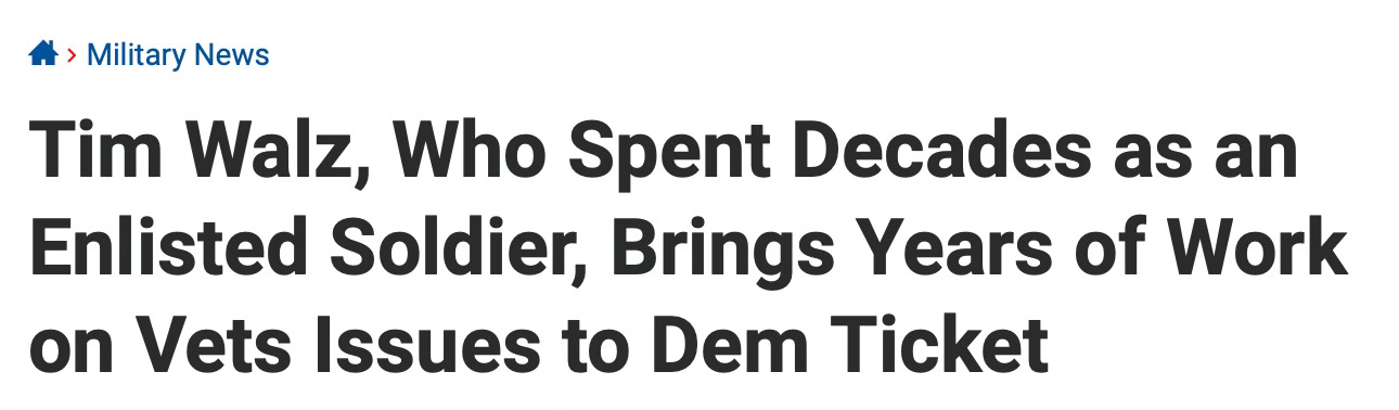 But now JD Vance is lying about Tim Walz’ military service, falsely claiming “When Tim Walz was asked by his country to go to Iraq, you know what he did? He dropped out of the Army and allowed his unit to go without him.”