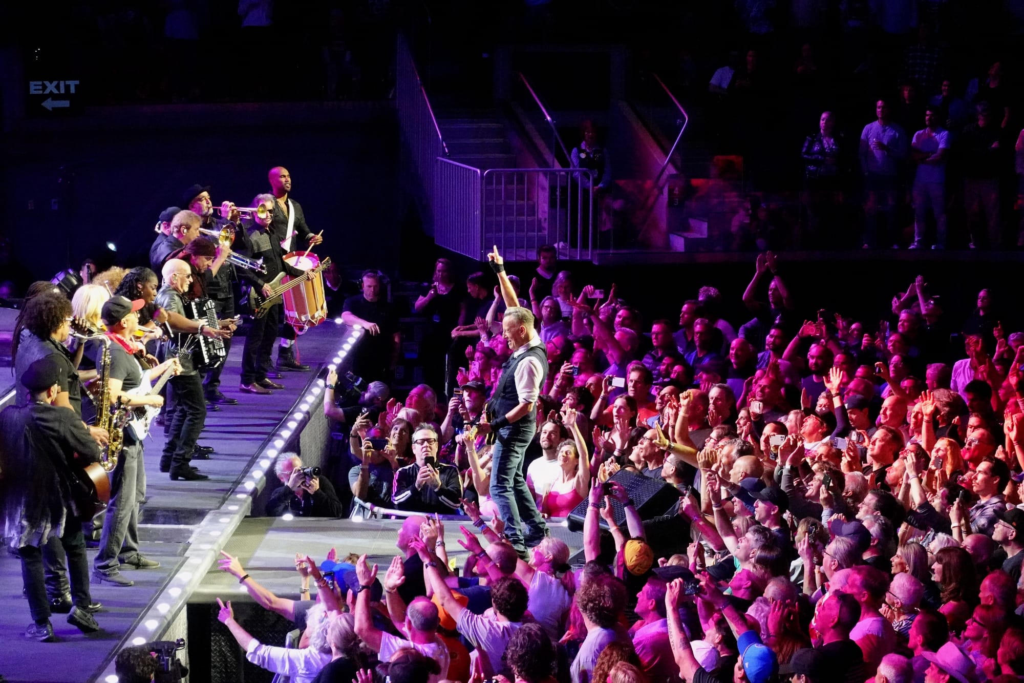 The current U.S. version of the Land of Hope and Dreams tour features a few changes from the version European audiences saw last summer: A few song changes, in part to take advantage of Tom Morello’s presence at these shows, and some re-worked speeches. The overall narrative is much the same, but with a subtle but important increase in his emphasis on collective action.