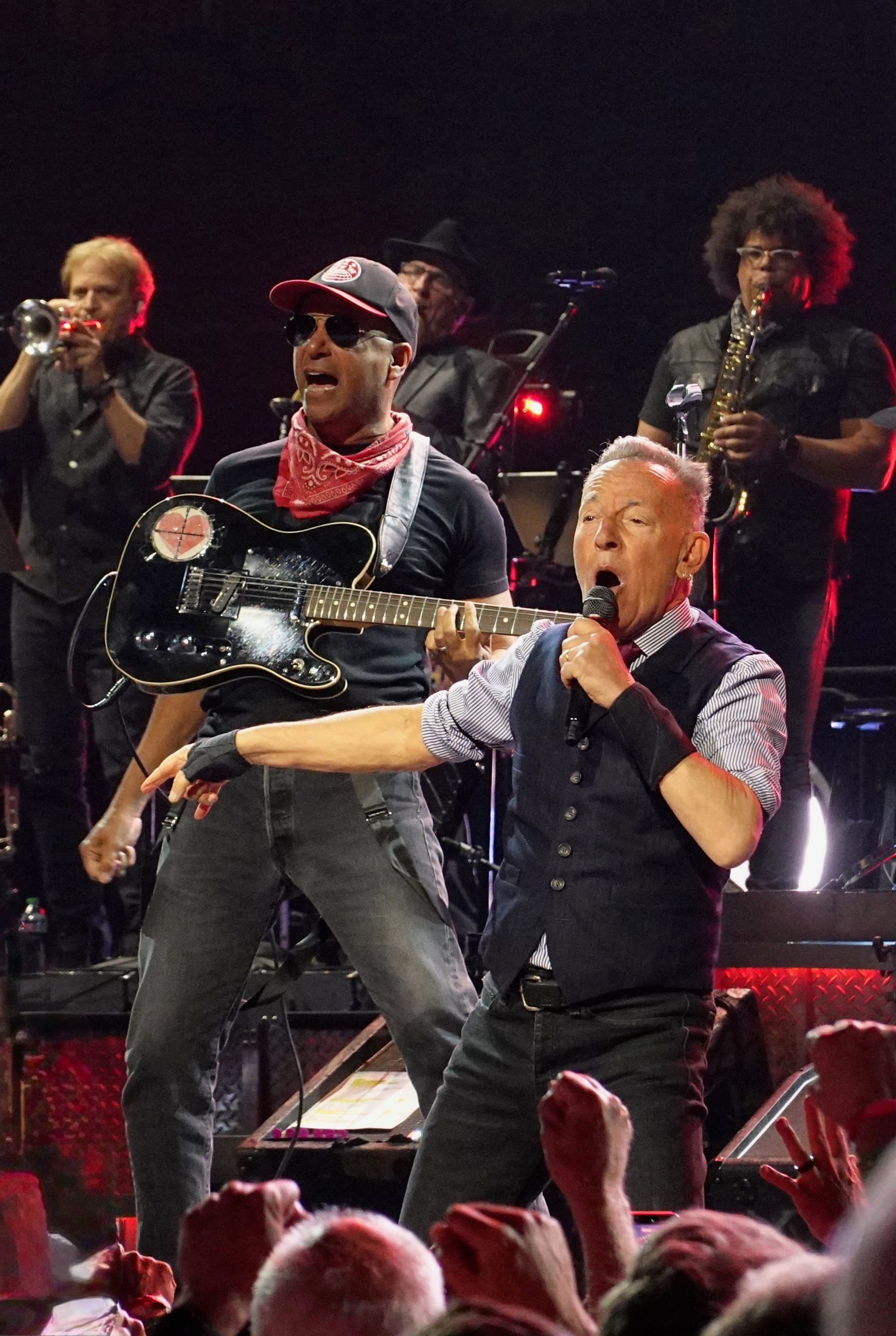 Two hours later, introducing the show-ending “Chimes of Freedom,” Springsteen makes a closing case that we’re in this together: “These are hard times, and the E Street Band was built for hard times. Hard times, but we’ll make it through. We’ll make it through. Because we’re the Americans.” And then, after again invoking Renee Good: