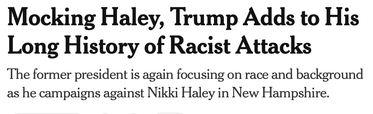 Tweeting that Donald Trump is a racist is hardly a shocking demonstration of bias. Trump, after all, is quite racist! And The New York Times knows Trump is quite racist. Here, take a look at this recent New York Times headline: