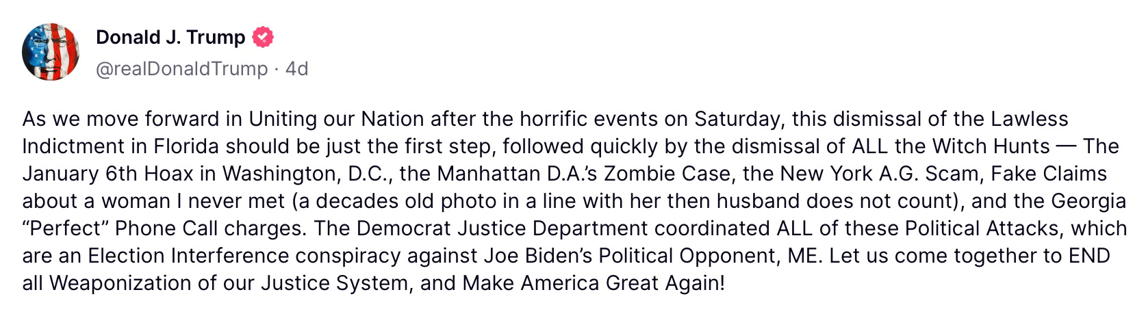 Take a look at Trump’s “Uniting our Nation” message four days ago: